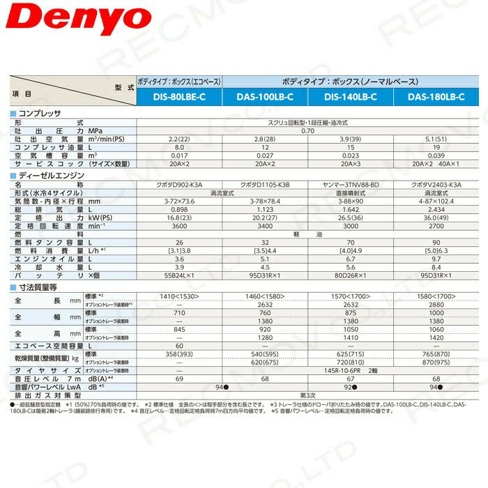 他の画像を見る 営業所止 設置場所要確認 デンヨー コンプレッサ 受注生産 納期別途ご案内 デンヨー エンジン コンプレッサ DIS-140LB-C アフタークーラータイプ 低騒音型【サービス店が納入点検】 価格 ¥ 2,083,186 税込 詳細を見る お気に入りに登録する (0)