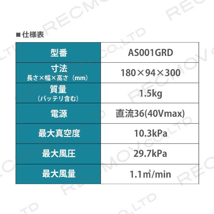 他の画像を見る マキタ 40Vmax 充電式 エアダスタ 吹き飛ばし マキタ 40V充電式エアダスタバッテリ充電器付 AS001GRD 吹き飛ばし 空気入れ 空気抜き 価格 ¥ 54,879 税込 詳細を見る お気に入りに登録する (0)