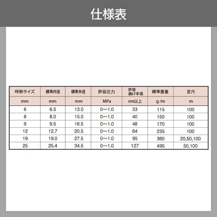 他の画像を見る 耐圧ホース 内径6mm×外径13mm×100m ホース100m カクイチ 内径6mm インダスNBA 耐圧ホース 土木 工業・産業 気体 水 油 粉体 耐寒 耐摩耗 薬品 軽量 農業 価格 ¥ 27,555 税込 詳細を見る お気に入りに登録する (0)