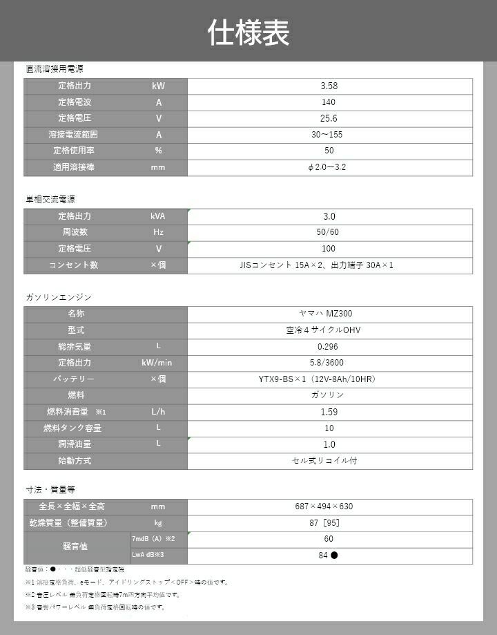 他の画像を見る 営業所止 設置場所要確認 デンヨー 発電機 インバーター 災害 防災 キャンプ デンヨー 溶接機 GAW-155ES インバーター発電機 ウェルダー 3000W 3.0kVA インバータ発電機 ガソリンエンジン 価格 ¥ 315,700 税込 在庫切れ 詳細を見る お気に入りに登録する (0)