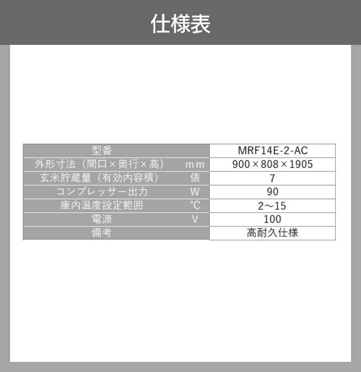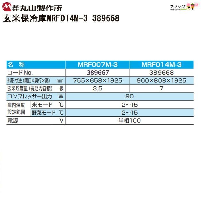 他の画像を見る 営業所止 設置場所要確認 受注生産 納期別途ご案内 丸山製作所 玄米保管庫 玄米保冷庫 MRF014M-3 389668 冷蔵庫 保冷庫 保管庫 米 野菜 保存 価格 ¥ 357,484 税込 詳細を見る お気に入りに登録する (0)