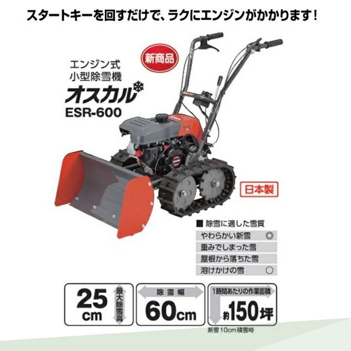 他の画像を見る 除雪機 家庭用 工進 ESR600 今季販売終了 工進 除雪機 ESR-600 オスカル 98.5cm3 小型 除雪機 家庭用 エンジン KOSHIN コーシン 価格 ¥ 210,100 税込 在庫切れ 詳細を見る お気に入りに登録する (0)
