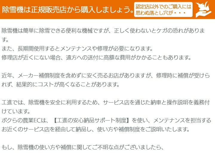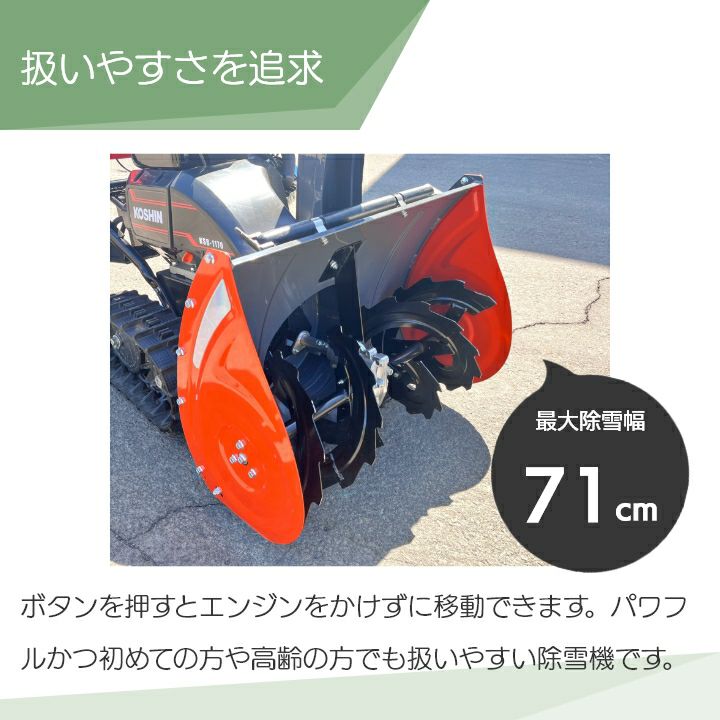 他の画像を見る 工進 除雪機 KSB1170 国産 エンジン 除雪機 【札幌近郊限定】工進 除雪機 エンジン式 除雪機 小型 家庭用 除雪機 KSB-1170 11馬力 除雪幅71cm 日本製 価格 ¥ 478,000 税込 詳細を見る お気に入りに登録する 5.00 (1)