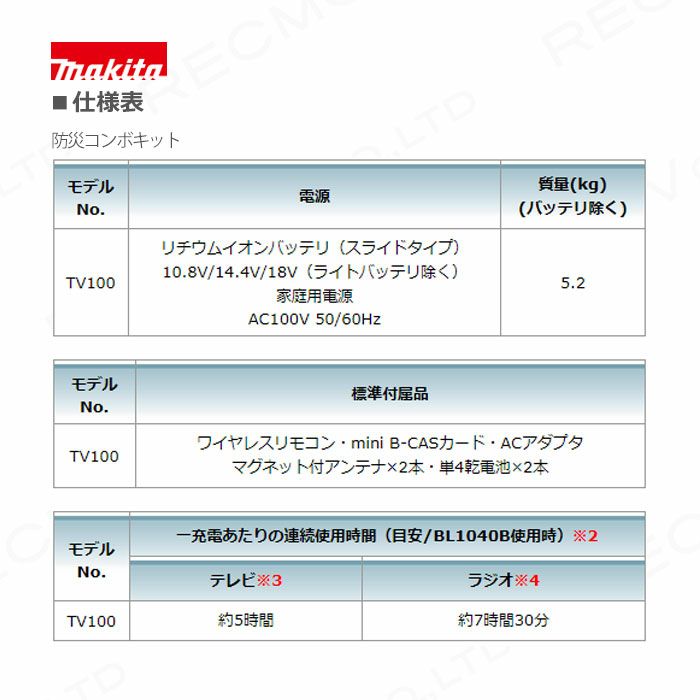 他の画像を見る マキタ 18V マキタ CK1011 マキタ 防災コンボキット CK1011 充電式ラジオ付テレビ TV100・充電式LEDワークライト ML807 ホームツール ラジオ 充電式 家電 価格 ¥ 76,186 税込 詳細を見る お気に入りに登録する (0)