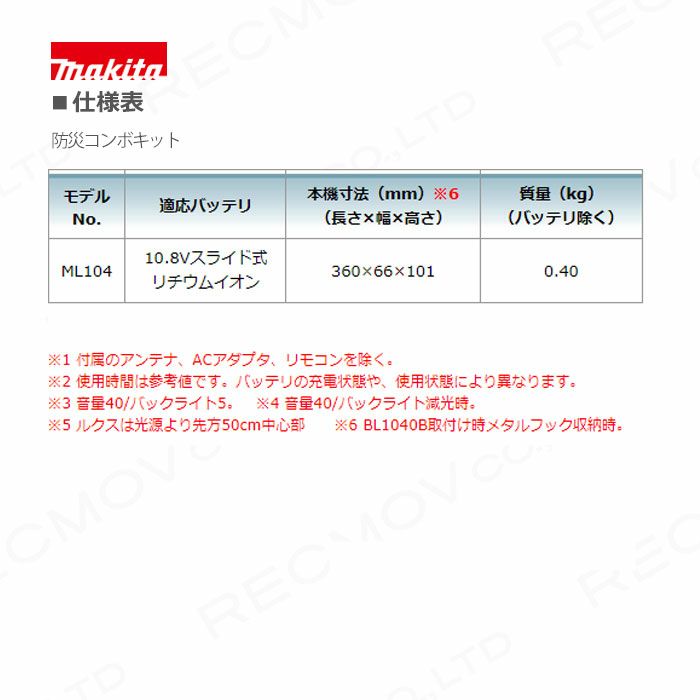 他の画像を見る マキタ 10.8V マキタ CK1010 マキタ 防災コンボキット CK1010 充電式ラジオ付テレビ TV100・充電式LEDワークライト ML104 ホームツール ラジオ 充電式 家電 価格 ¥ 75,903 税込 詳細を見る お気に入りに登録する (0)