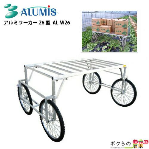 営業所止 アルミス 台車 荷台 収穫台車 アルミス アルミワーカー26型 26インチ エアータイヤ 最大荷重250kg 横180cm×幅99cm×高104cm ALUMIS