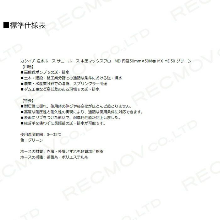 他の画像を見る 送水ホース 内径50mm×30m巻 ホース 30m カクイチ 内径50mm マックスフローMD 送水ホース 中圧タイプ 土木 水 耐摩耗 止水板 価格 ¥ 16,660 税込 詳細を見る お気に入りに登録する (0)