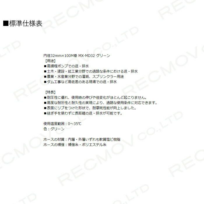他の画像を見る 送水ホース 内径32mm×100m巻 ホース 100m カクイチ 内径32mm マックスフローMD 送水ホース 中圧タイプ 土木 水 耐摩耗 止水板 価格 ¥ 28,543 税込 詳細を見る お気に入りに登録する (0)