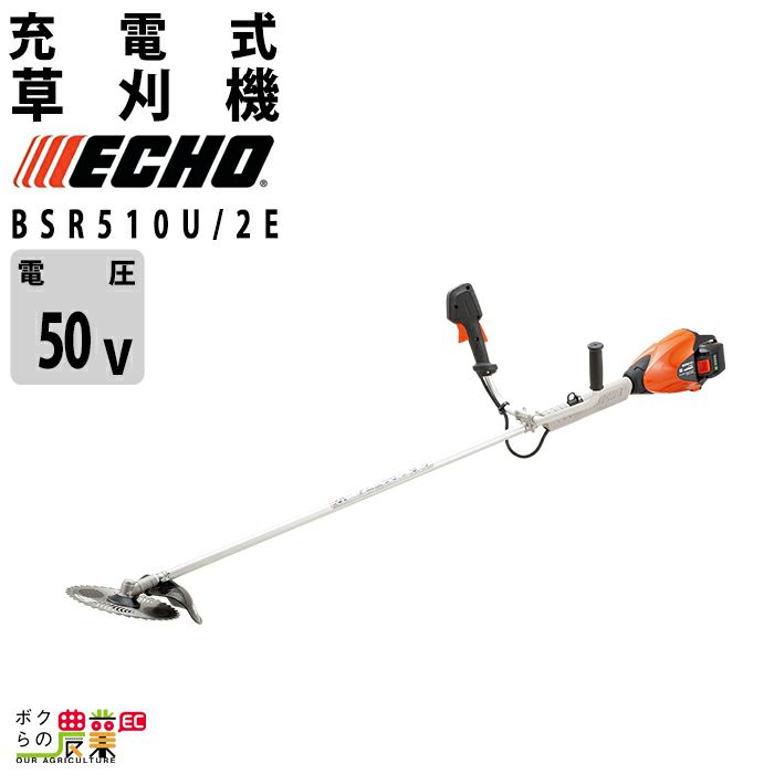 営業所止 刈払機 草刈機 低振動・低騒音・排ガスゼロ 2025年10月下旬入荷予定 草刈機 充電式 バッテリー 50V 左右非対称 Uハンドル エコー BSR510U/2E 3.2kg 2Pバッテリー・充電器付属