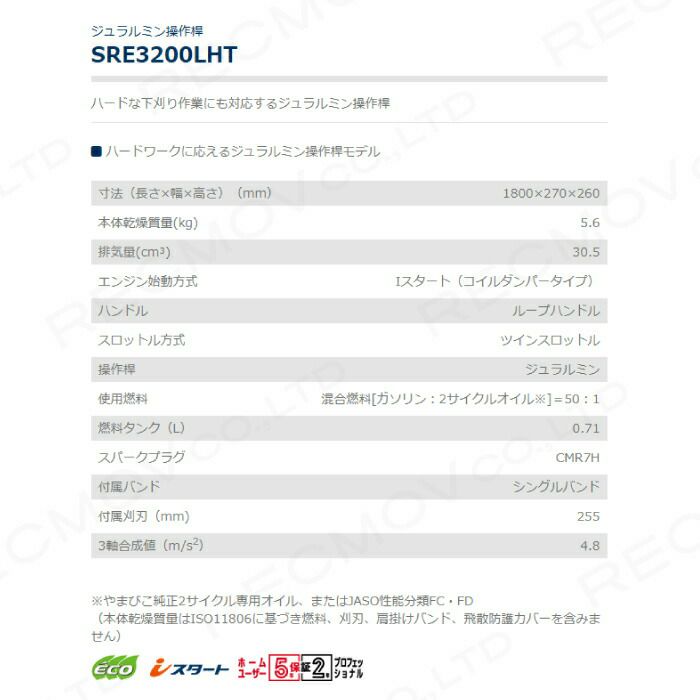 他の画像を見る 草刈機 エンジン 共立 SRE3200LHT Lハンドル 肩掛け式 2ストローク やまびこ 共立 草刈機 エンジン 2サイクル SRE3200LHT 30.5cc ループハンドル 肩掛式 価格 ¥ 72,496 税込 詳細を見る お気に入りに登録する (0)