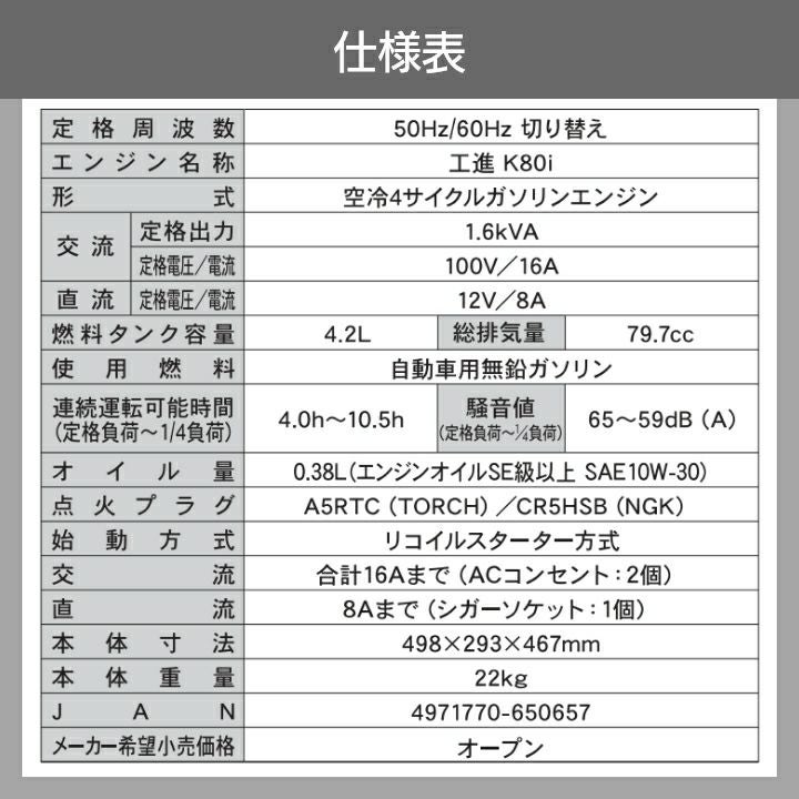 他の画像を見る 工進 発電機 インバーター KOSHIN コーシン 災害 防災 キャンプ 工進 インバーター発電機 GV-16i+専用キャリー GVC-1 セット商品 1600W 1.6kVA インバータ発電機 ガソリンエンジン 価格 ¥ 99,800 税込 詳細を見る お気に入りに登録する (0)