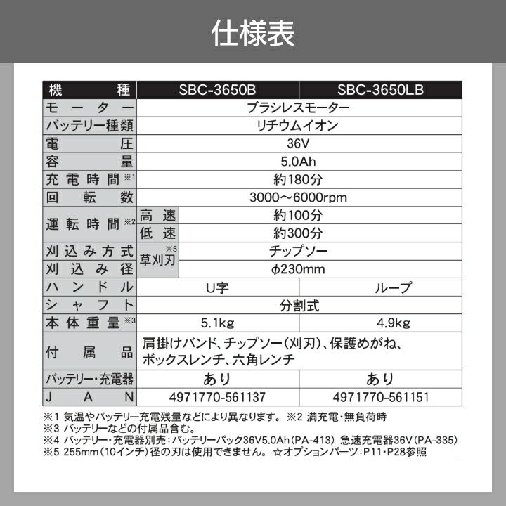 他の画像を見る 刈払機 草刈機 ガーデニングから農作業まで 草刈機 充電式 バッテリー 36V ループハンドル 肩掛け 工進 SBC-3650LB スマートコーシン 4.9kg バッテリー・充電器付属 価格 ¥ 32,800 税込 詳細を見る お気に入りに登録する (0)