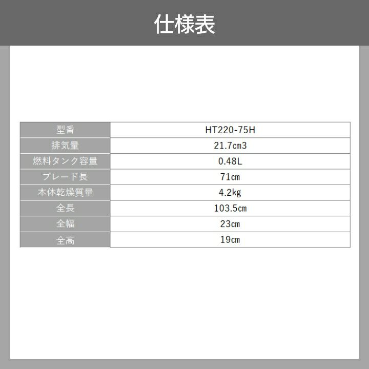 他の画像を見る バリカン ハード 刃厚2.5mm 硬い剪定枝も楽々カット ゼノア ヘッジトリマ エンジン 排気量 21.7cc 片刃 710mm HT220-75H 967660201 4.2kg 価格 ¥ 71,660 税込 詳細を見る お気に入りに登録する (0)