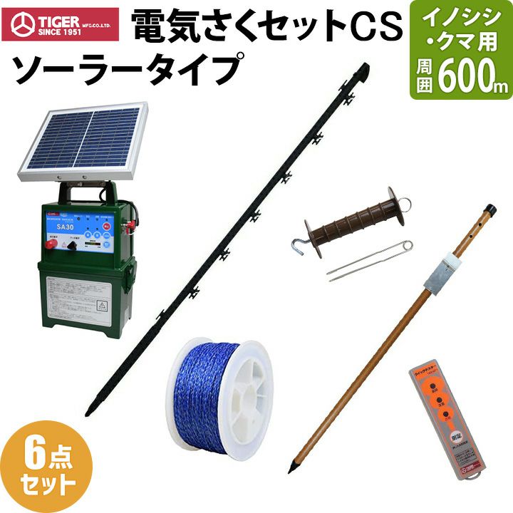 タイガー 電気さくセットCS ソーラータイプ イノシシ・クマ対策 周囲600m さく線2段張仕様 出入口1カ所 セット内容詳細 商品の詳しい情報は「詳細はこちら」をご覧ください。