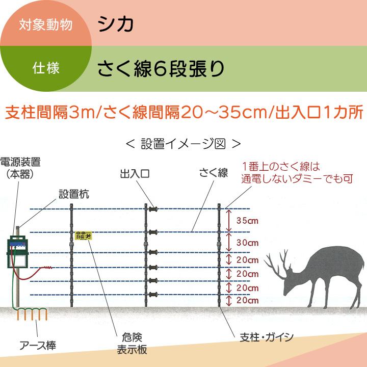 タイガー 電気さくセットGS ソーラータイプ シカ対策 周囲120m さく線6段張仕様 出入口1カ所 セット内容詳細 商品の詳しい情報は「詳細はこちら」をご覧ください。