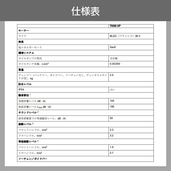 他の画像を見る ハスクバーナ リンク数 51コマ トップハンドル チェーンソー チェンソー 充電式 36V ハスクバーナ トップハンドル T535iXP SP21G 12RT SP21G 2.4kg ガイドバー300mm 12インチ 970716412 バッテリー・充電器別売 価格 ¥ 53,538 税込 在庫切れ 再入荷お知らせ お気に入りに登録する (0)