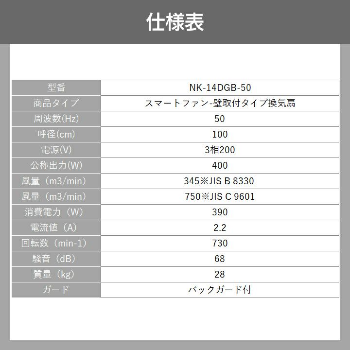 他の画像を見る 法人様限定 Panasonic 換気扇 法人宛のみ宅配可 パナソニック 畜産用 換気扇 NK-14CZB 60hz スマートファン 吊下タイプ Panasonic 牛舎 畜舎 扇風機 価格 ¥ 83,273 税込 詳細を見る お気に入りに登録する (0)