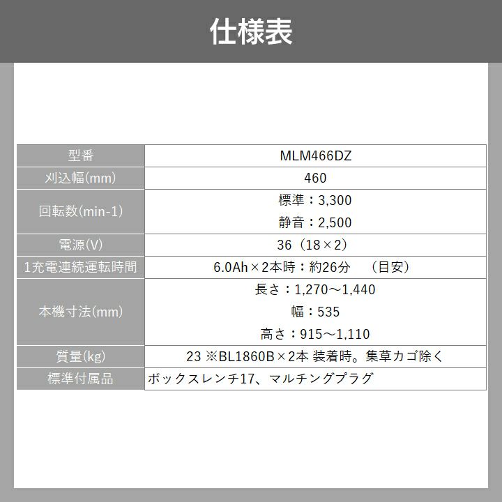 他の画像を見る マキタ 充電式 芝刈り機 芝刈 電動 バッテリー式 マキタ 充電式 芝刈機 MLM466DZ 18V + 18V 36V 本体のみ バッテリ・充電器別売 刈込幅 460mm 芝刈り機 makita 価格 ¥ 75,847 税込 カートに入れる お気に入りに登録する (0)