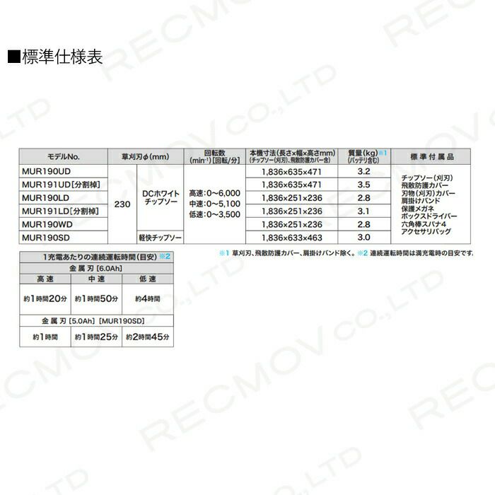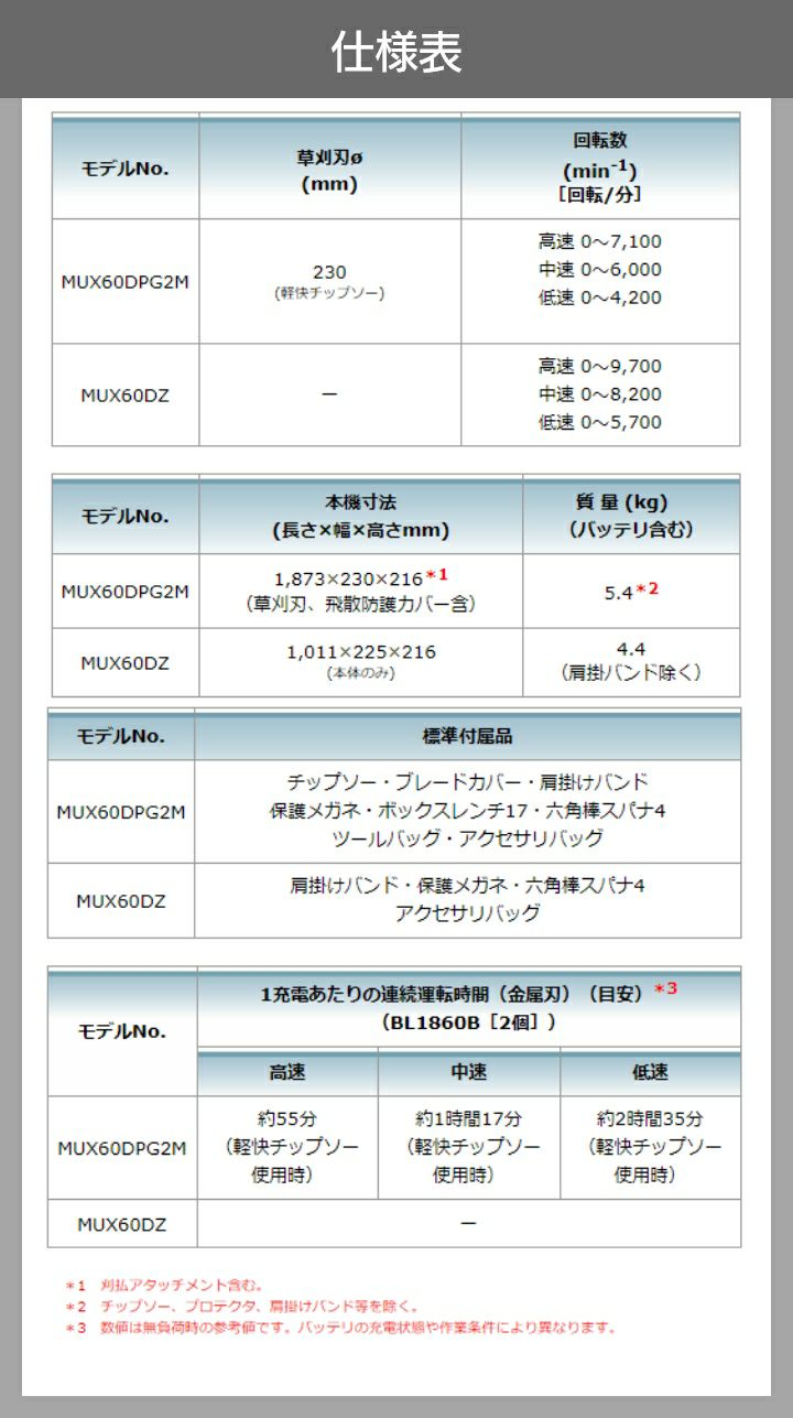 他の画像を見る 充電式 充電式スプリットモータ モータ部のみ マキタ 充電式 18V + 18V 36V MUX60DZ スプリット エンジン25ccクラスと同様 充電式スプリットモータ モータ部のみ 4.4kg 本体のみ バッテリ充電器別売 価格 ¥ 42,350 税込 詳細を見る お気に入りに登録する (0)