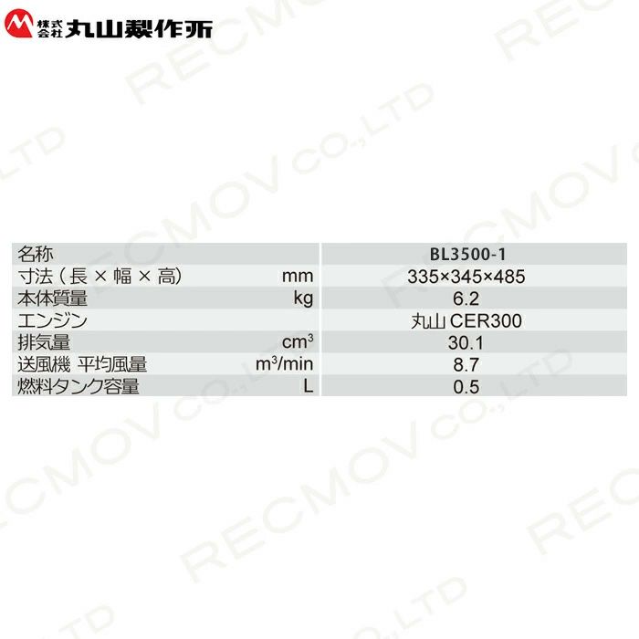 他の画像を見る BL3500-1 395896 丸山製作所 30.1cm3 丸山製作所 ブロワー BL3500-1 395896 30.1cm3 エンジン式 肩掛け式 風量 8.7cm3/min 6.2kg ブロアー 丸山 価格 ¥ 82,772 税込 詳細を見る お気に入りに登録する (0)