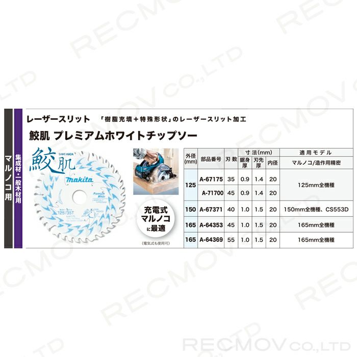 他の画像を見る マキタ 鮫肌 チップソー 外径125mm 刃数35 マキタ 鮫肌プレミアムホワイトチップソー 外径125mm 刃数35 A-67175 価格 ¥ 6,261 税込 詳細を見る お気に入りに登録する (0)