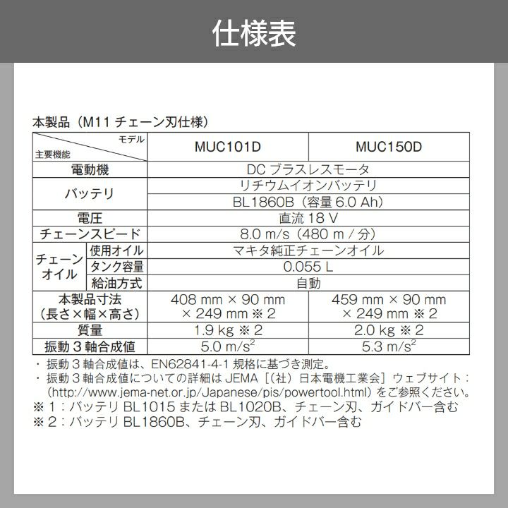 他の画像を見る マキタ チェーンソー 充電式 40Vmax 350mm マキタ 充電式 チェーンソー MUC022GRU 40Vmax バッテリー・充電器付 価格 ¥ 96,075 税込 カートに入れる お気に入りに登録する (0)