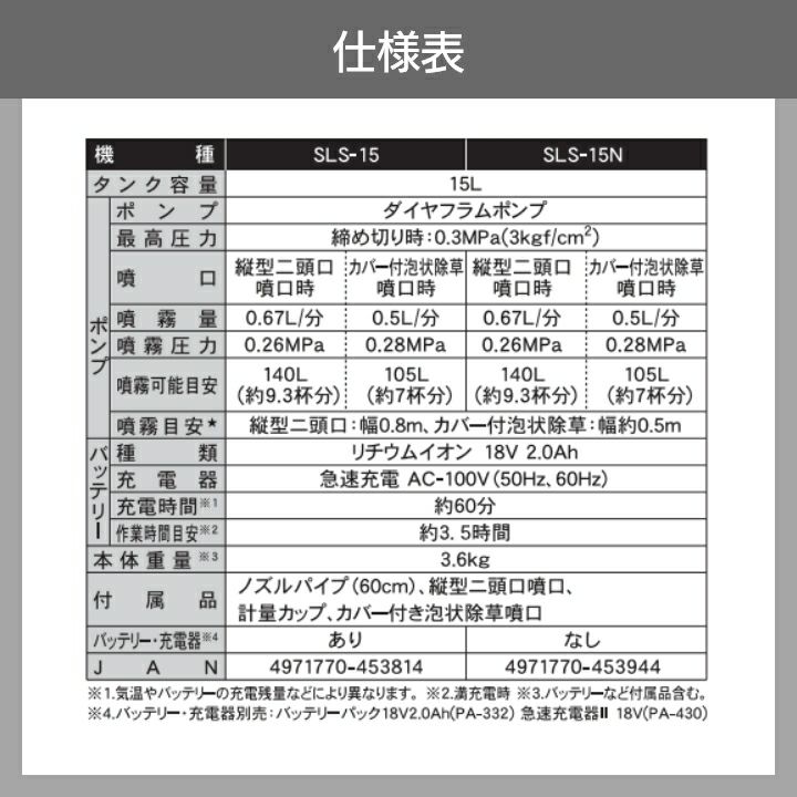 他の画像を見る 電動噴霧器 バッテリー 肩掛け式 電動噴霧器 充電式噴霧器 工進 噴霧器 SLS-15 ワイド一頭口噴口 DP-162 セット商品 バッテリー 肩掛け式 スマートコーシン 15Lタンク 価格 ¥ 32,800 税込 詳細を見る お気に入りに登録する (0)