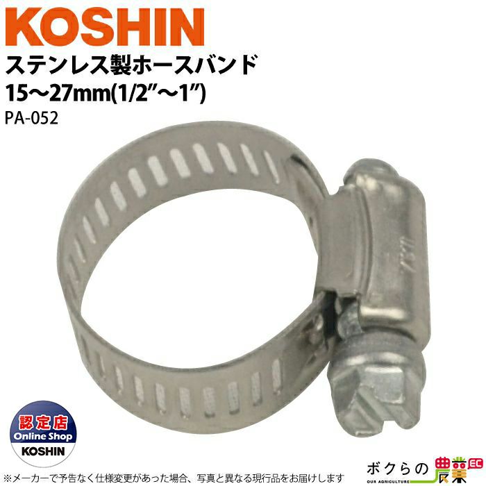 他の画像を見る 代引不可 工進 KOSHIN SUS製 ホースバンド 15?27mm 1/2?1 PA-052 価格 ¥ 1,463 税込 ホースの接合・締め付けに 型式:PA-052 仕様:15~27mm(1/2"~1") 材質:ステンレス JAN:4971770-100459 詳細を見る お気に入りに登録する (0)