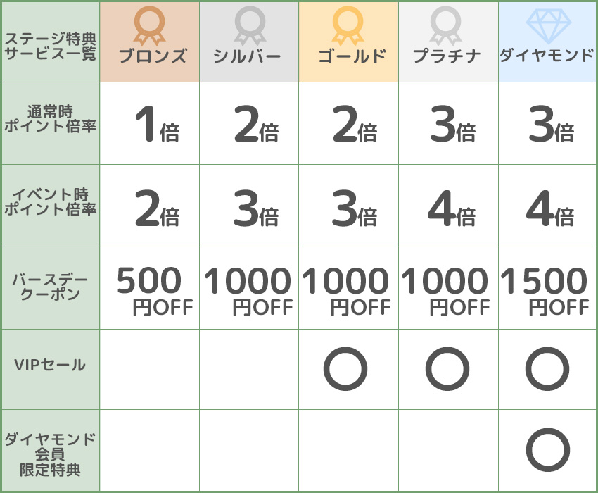 ※ダイヤモンド会員限定特典はダイヤモンドステージの会員様別途ご案内をいたします。