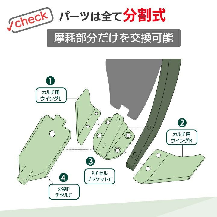 他の画像を見る カルチ用 リプラウ 摩耗する刃先部分だけ交換できる リプラウ カルチ用チゼル カルチ用リプラウスターターセットPチゼルタイプ-2 C1SET-B ウイングL+R+ブラケットC 分割式 チゼル ブラケット ウイング スタブル カルチ 交換部品 土耕部品 価格 ¥ 22,550 税込 詳細を見る お気に入りに登録する