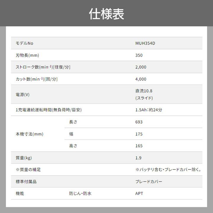 他の画像を見る 生垣バリカン 充電式 トリマ マキタ 充電式 生垣バリカン 10.8V MUH353DSH スライド式 350mm トリマ 2.4kg バッテリー・充電器付属 バッテリー付き 価格 ¥ 21,230 税込 詳細を見る お気に入りに登録する